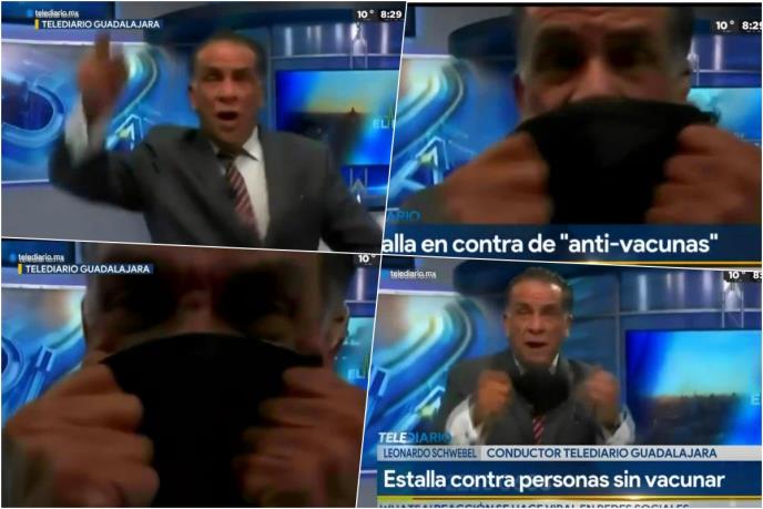 Leonardo Švebel koji čita vesti na TV kanalu iz Gvadalahare počeo je da vređa ljude koji se nisu vakcinisali ili ne nose maske: "Ako si protiv vakcine, ti si imbecil... stavi prokletu masku na lice!", čuje se kako viče dok se unosi u kameru.