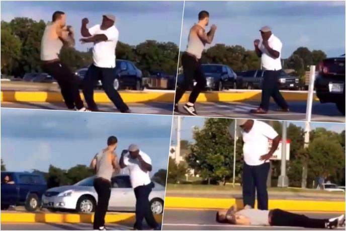 Deda je brutalno nokautirao mnogo mlađeg rivala. Ovaj je pao kao pokošen i ostao da leži na ulici.