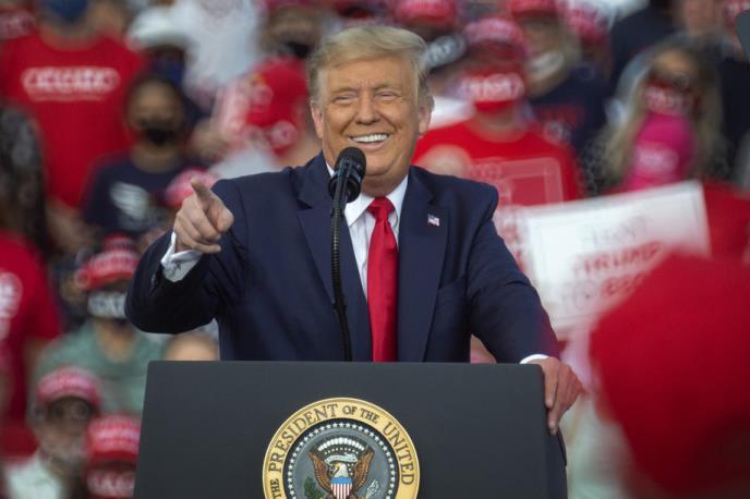 "Četrdeset peti i četrdeset sedmi“, odgovario je Tramp kao iz topa, očigledno sugerišući da će postati sledeći predsednik, posle sadašnjeg, 46. predsednika SAD Džoa Bajdena.