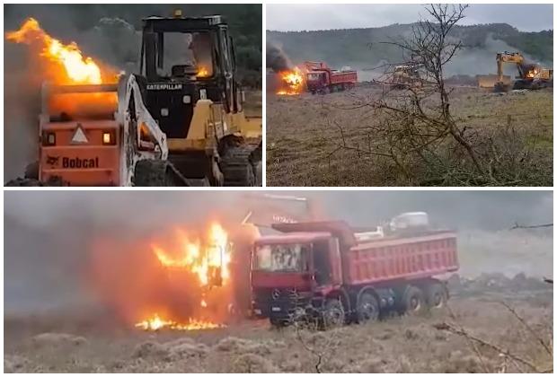 Nakon mirnog marša do lokacije Plati po jakoj kiši dan ranije, manja grupa demonstranata zapalila je velike mašine koje koristi jedna privatna firma u realizaciji projekta vrednog 87,5 miliona evra.