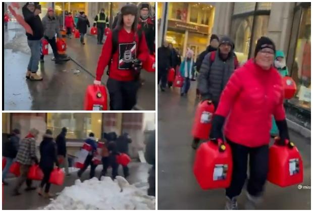 Međutim, stotine demonstranata odgovorilo je na pretnju noseći ulicama Otave crvene kante za gorivo – uglavnom prazne ili napunjene vodom.