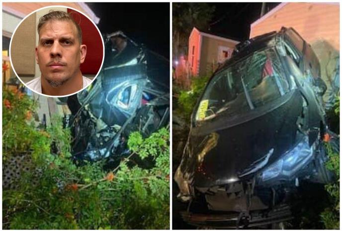 Ukućani na čiju je kuću pao automobil su spavali tokom incidenta i ostali su nepovređeni, a muškarac je kasnije uhapšen, saopštile su lokalne vlasti.