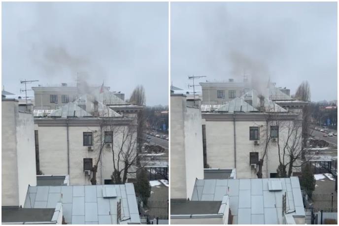 Po društvenim mrežama kruže snimci na kojima se navodno vidi ruska ambasada u glavnom gradu Ukrajine iz koje izlazi dim.
