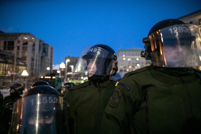 Razbijanje "Konvoja slobode" počelo je juče ujutru kada je stotine policajaca, neki u opremi za nerede, a neki sa automatskim oružjem, počele da odvode demonstrante sa lisicama sa snegom pokrivenih ulica.