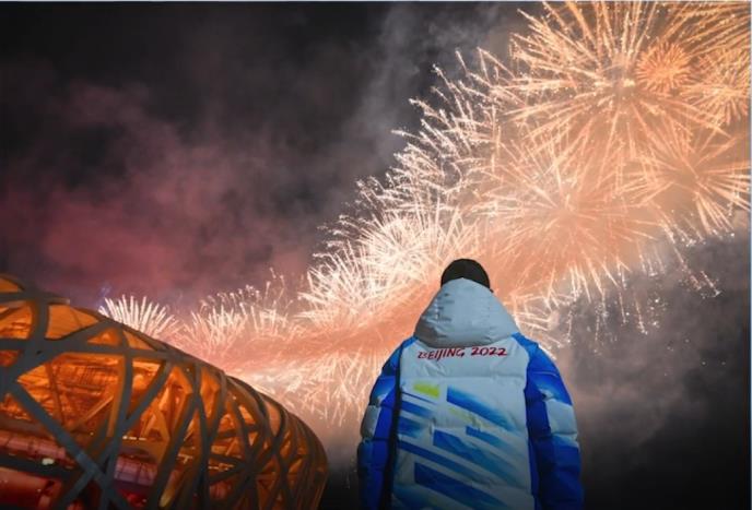 Na zatvaranju Zimskih olimpijskih igara u Pekingu je nastavljena romantična priča u kineskom stilu, kada su bezbrojne crvene trake platformu u obliku pahulje za olimpijski plamen ukrasile kao ogromni kineski čvor.