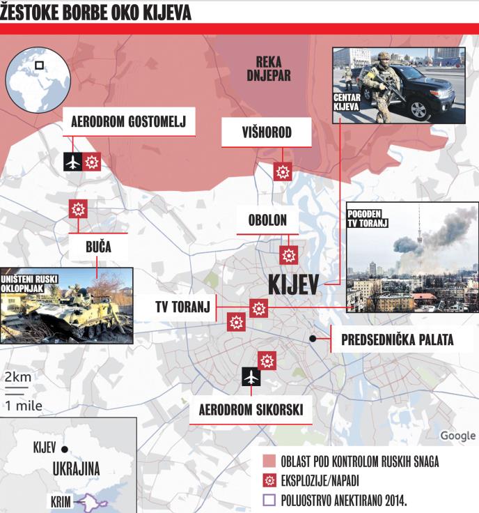 DETALJNA MAPA OPSEDNUTOG KIJEVA Rusi nisu osvojili nijedan deo ukrajinske prestonice, ali je okružuju Progovorili i o GUBICIMA