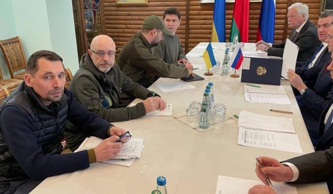 Ukrajinska delegacija je na Tviteru postavila kratak video i sliku. Savetnik Zelenskog je napisao: „Počeli smo pregovore, ovo su ključne tačke: trenutni prekid vatre, prekid vatre i humanitarni koridor za evakuaciju civila.