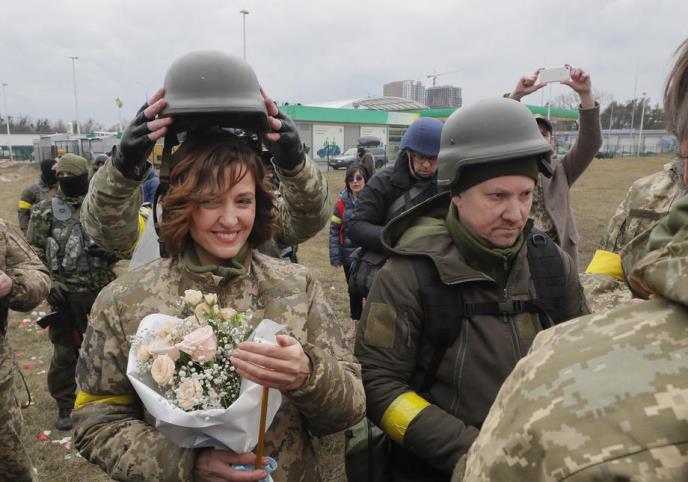 Slike mladenaca u uniformi, nastale su danas u okolini Kijeva. Kako se navodi, radi se o Lesiji Ivaščenko i Valeriju Filimonovu.