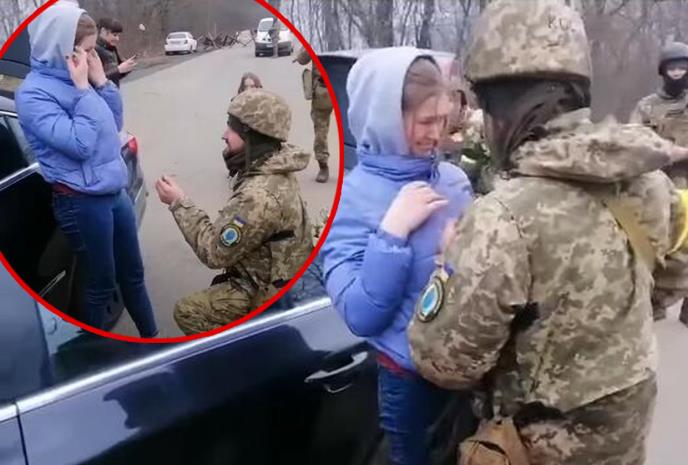 OVAJ SNIMAK IZ UKRAJINE RAZNEŽIO JE CEO SVET! Pogledajte kako je vojnik zaprosio devojku na frontu POČELO JE KAO HOROR