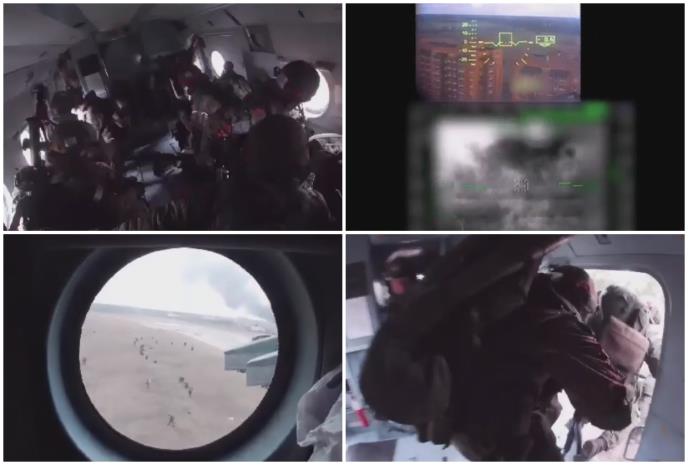 Na objavljenom snimku se vidi unutrašnjost transportnog helikoptera Mi-17V5 u kome se nalaze pripadnici SPECNAZ -a i VDV koji se se iskrcali iz helikoptera i počeli da zauzimaju pozicije .