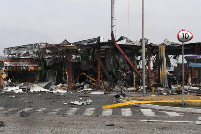 Put za dobrovoljce je opasan. Gomila iskrivljenog metala koja je nekada bila benzinska pumpa nalazi se sa druge strane kršom posute raskrsnice na glavnom zapadnom autoputu iz Kijeva.