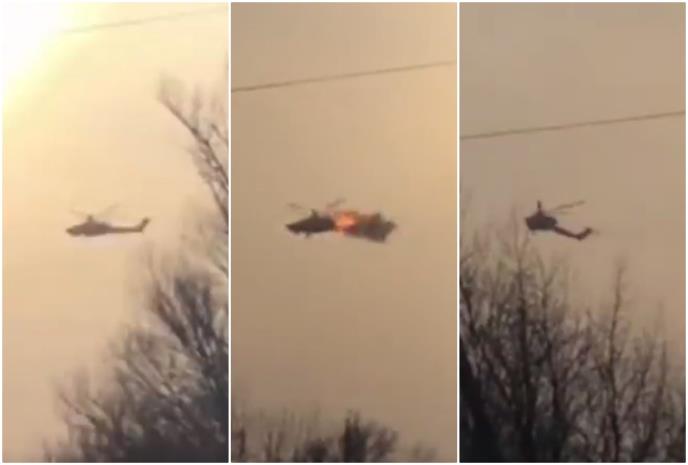 Na snimku koji je objavljen vidi helikopter koji leti i koga u jednom trenutku pogađa PVO rakete. Za sad nije poznato da li je u pitanju PVO sisteim tipa Igla, Stinger ili poljski Piorun.