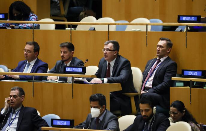 Rusija, kako je rekao, smatra da je rezolucija koju je usvojila Generalna skupština o suspenziji Rusije nezakonita i politički motivisana s ciljem da se demonstrativno kazni jedna država članica UN koja vodi nezavisnu spoljnu i unutrašnju politiku.