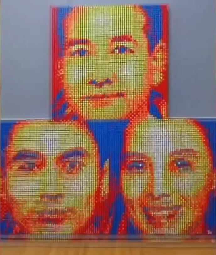 Momak iz provincije Sičuan Džang Tao je od 1.200 čarobnih kocki napravio portrete astronauta Džai Džiganga, Vang Japinga i Je Guangfua.