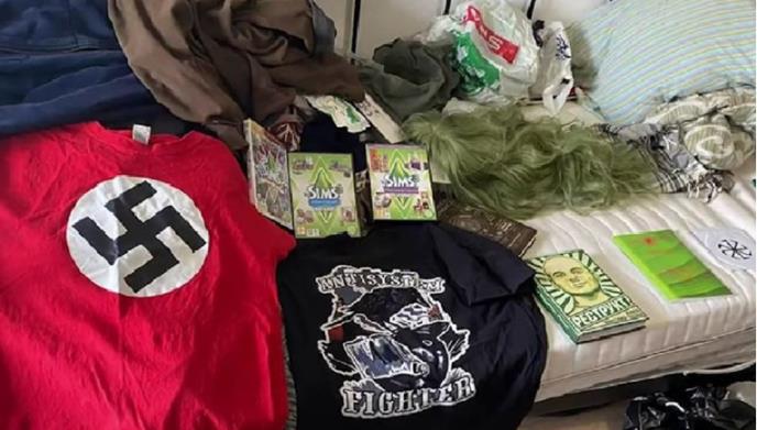 Na snimku se vidi niz stvari koje su navodno pronađene u stanu, uključujući fotografiju Adolfa Hitlera, šest ukrajinskih pasoša, zelenu periku i potpuno nove majice sa kukastim krstovima. Na snimku se vide i tri kopije video igrice Sims 3 kako leže na krevetu, kao i knjiga sa natpisom: „Ubij da bi živeo i živi da bi ubio“.