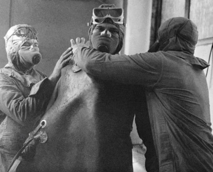 Sva trojica su bila zaposlena u nuklearnoj elektrani Černobilj. U posebnim odelima trebalo je da prođu kroz poplavljene podrumske prostorije.