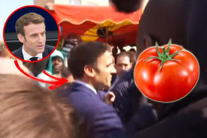 Tokom šetnje u Seržiju na periferiji Pariza, Makron je gađan paradajzom. Srećom po Makrona, povrće nije pogodilo cilj: