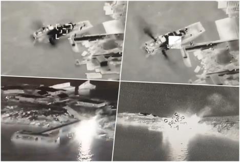 Na snimku u blizini vidi se i brzi patrolni čamac klase Raptor., koji je ostao neoštećen, dok je desantni čamac izgoreo u celosti posle eksplozije.