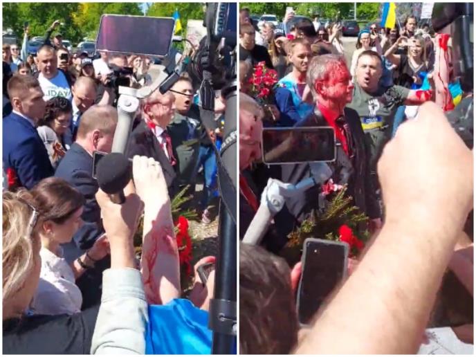Šef poljske diplomatije Zbignjev Rau izrazio je žalenje zbog današnjeg izgreda kada su ukrajinski i poljski demonstranti polili na Groblju sovjetskih vojnika u Varšavi crvenom bojom krvi, simbolično za žrtve rata u Ukrajini, ambasadora Rusije u Poljskoj Sergeja Andrejeva skandirajući "banditi, fašisti" i sprečili ga da položi venac.