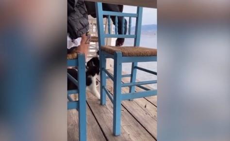 Na snimku šokantnog incidenta vide se tri osobe koje večeraju napolju u primorskom restoranu na ostrvu Evija. Dva umiljata crno-bela mačeta im prilaze tražeći hranu, a jedan muškarac kreće da mami mačiće mašući ribom.