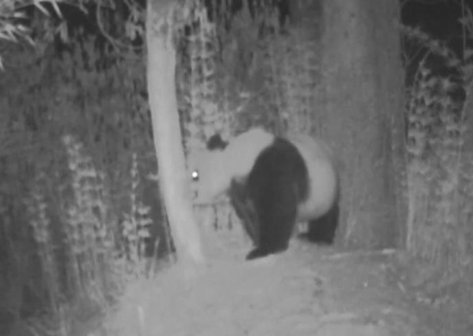 U Nacionalnom parku Džinovske pande u jugozapadnoj kineskoj provinciji Sičuanu, infracrvena kamera nedavno je snimila majku i mladunca divlje džinovske pande. Na snimku mala panda prati majku, koja traži hranu u šumi.