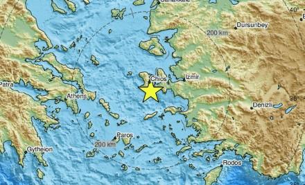 Epicentar je bio 26 kilometara od ostrva Hios, i 87 kilometara od Karabaglara u Turskoj.