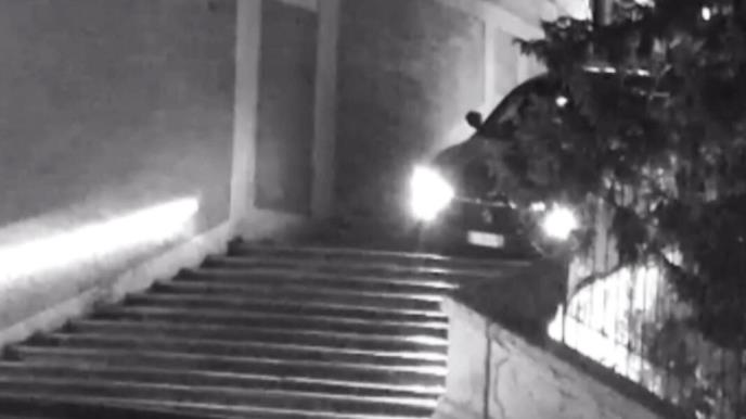 Na snimku incidenta se vidi kako je maserati tokom noći između utorka i srede uleteo u pešačku zonu iznad stepenica. Auto se spustio prvih nekoliko stepenica i potom zaustavio, a vozač je izašao da vidi kakva je situacija na vozilu.