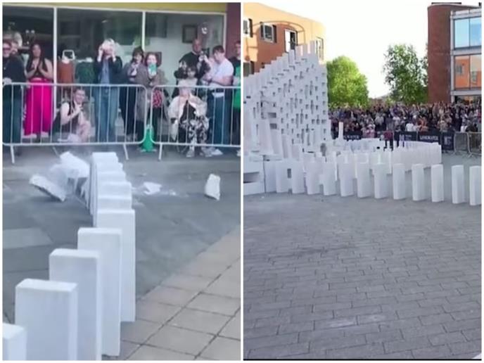Domine su delo umetnika Džulijana Mejnarda Smita i bilo je potrebno pola sata da sve popadaju.