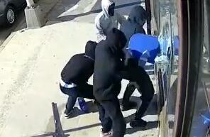 Na snimci se vidi kako dvojica od njih udaraju maljem u prozor nekoliko puta dok druga dvojica ulaze u kadar. Oni prave malu rupu, gurajući ruke unutra da bi napravili veću dok su izvlačili gomilu nakita i zlata.