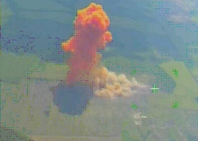 Ministarstvo odbrane je takođe objavilo snimke iz vazduha narandžastog oblaka koji dolazi sa mesta eksplozije. Ministarstvo je podsetilo da to nije prvi put da je ukrajinska vojska koristila veliku količinu amonijum nitrata za eksplozije da bi optužila Rusiju za insceniranje hemijskog napada.