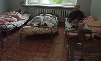 Na snimku se vide vidno izmučeni muškarci koji leže na krevetima na bolničkom odeljenju, umotani u ćebad. Mnogi od njih gledaju u prazno.