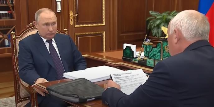 Putin je u četvrtak snimljen tokom sastanka sa Sergejem Čemezovim, direktorom bezbednosne tehnološke kompanije Rostek koja je pod kontrolom države, a dve stvari svima su privukle pažnju.