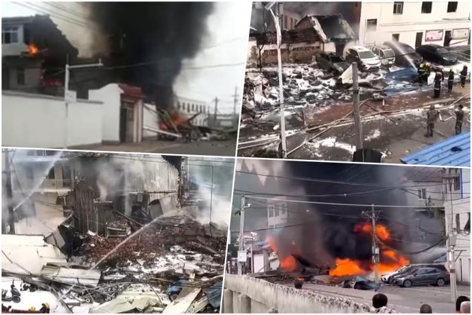 Video snimci na društvenim mrežama prikazuju kuće koje gore pored srušenog aviona. Incident se dogodio u blizini aerodroma Laohekou u Sjangjangu.