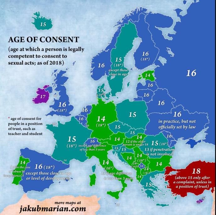 SME LI ODRASLA OSOBA DA IMA SEKSUALNI ODNOS SA OSOBOM OD 17 GODINA? Ovo je starosna granica u Evropi, i varira od zemlje do zemlje