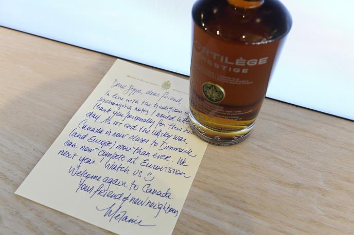 Nekoliko nedelja kasnije, danski ministar za poslove Grenlanda otišao je na ostrvce i zamenio zastavu Kanade danskom, i ostavio je flašu akvavita iz Kopenhagena. Ministar je takođe ostavio poruku, na kojoj je pisalo "Dobrodošli na dansko ostrvo". Tako je počeo "Rat viskijem".