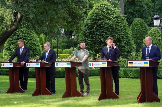 Makron je govorio posle zajedničkih razgovora koje su on, nemački kancelar Olaf Šolc, italijanski premijer Mario Dragi i rumunski predsednik Klaus Johanis imali danas sa ukrajinskim predsednikom Volodimirom Zelenskim u Kijevu.