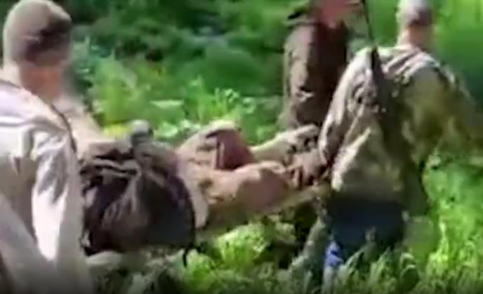 Eksplicitne slike pokazuju otkriće tela čoveka, u okrugu Tulun u Irkutskoj oblasti, u Sibiru, sa lešom zveri pronađenom 54 metra dalje.