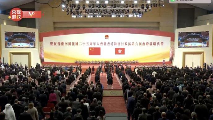 Proslava 25. godišnjice povratka Hongkonga domovini i ceremonija inauguracije šestog saziva uprave Specijalnog administrativnog regiona Hongkonga jutros su svečano održane u Kongresnom i izložbenom centru u Hongkongu. Predsednik Kine Si Đinping prisustvovao je proslavi i održao govor.