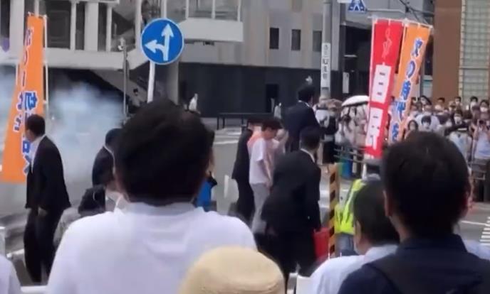 Sada je isplivao i snimak trenutka kada je atentator pucao u Abea. Naime atentator je na bicliku prišao na ulici Abeu i uprkos obezbeđenju pucao u njega sa leđa. Kada je odjeknuo pucanj i dim usledila je panika. Abe je pogođen sa veoma male daljine uprkos obezbeđenju koje ga je pratilo.