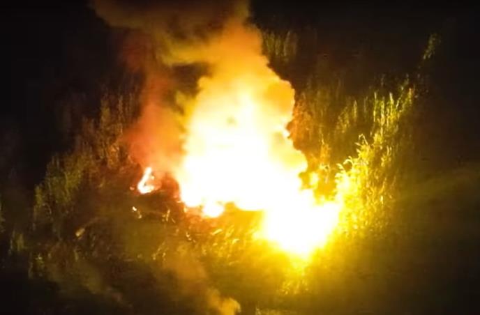 Razmere uništenja aviona koji se kao užarena lopta stuštio ka zemlji najbolje su vidljive snimcima načinjenim dronom, direktno iznad ostataka aviona. Na snimku iz vazduha vidi se niz lančanih eksplozija posle pada letilice na obodima Kavale.