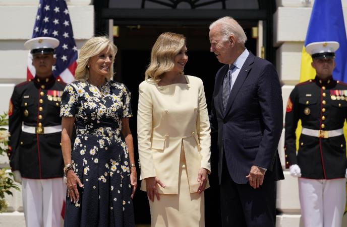 Američki predsednik Džo Bajden i njegova supruga Džil Bajden dočekali su danas uz buket cveća, prvu damu Ukrajine Olenu Zelensku ispred Bele kuće.