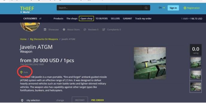 Prema navodima portparola Evropola, u Darknetu su se pojavile ponude za prodaju protivoklopnih rakete američke proizvodnje tipa "Džavelin", ali je ukazao da to treba proveriti i utvrditi da li je reč o pravim ponudama ili o ruskoj propagandi.