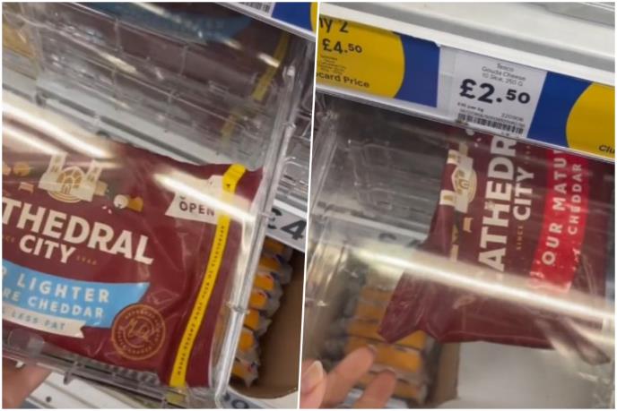 U sada viralnom videu, kupac iz britanskog Teska otkrio je da je prodavnica zaključala određena pakovanja sira u pojedinačne sigurnosne kutije.
