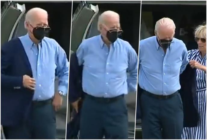 Predsednik SAD Džo Bajden pokušao je da se izbori sa novom situacijom koja je nastala nakon što je izašao iz helikoptera, ali mu to nije pošlo za rukom, nego je morala u pomoć da mu priskoči prva dama.