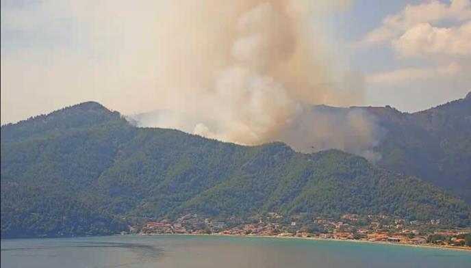 Stanovnicima jednog sela na ostrvu Tasos, u severnom Egejskom moru, rečeno je da se evakuišu jer je veliki požar koji je izbio u borovoj šumi na istoku u sredu uveče nastavio da besni.