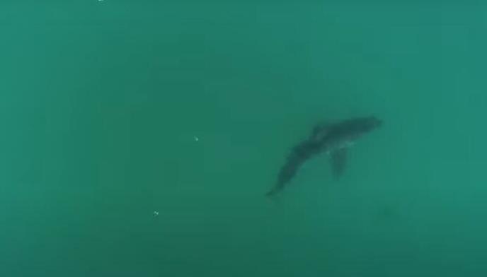 Zastrašujući snimak dronom koji je osvanuo na internetu prikazuje veliku belu ajkulu koja je dostigla neverovatnu brzinu dok je jurila prema obali.