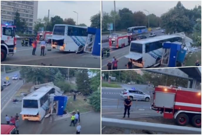 Fotografije bugarske novinske agencije Bgnes na licu mesta pokazuju zgužvan policijski automobil i oštećen autobus pored puta, sa desetinama putnika koji sede na zemlji u blizini.