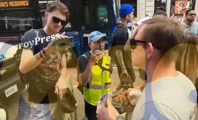 Kako se vidi na snimku koji je objavljen na društvenim mrežama, on je stao pred aktiviste i počeo da jede svoj kebab.