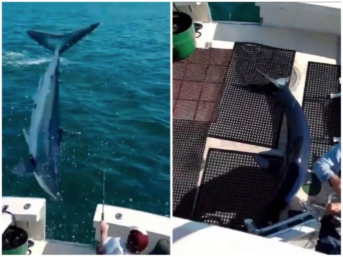 Kamera je uhvatila trenutak kada je najbrža ajkula na svetu skočila na palubu čamca i zamalo udarila u grupu zapanjenih ribara. Na snimku koji je podelio Kameron Sinkler, jedan od ribolovaca na brodu, vidi se atlantska kratkoperajna mako ajkula kako iskače iz vode dok pecaroši privlače svoj ulov bliže čamcu.