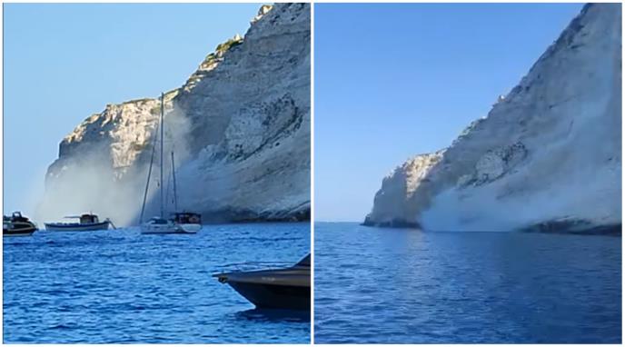 UZNEMIRUJUĆI SNIMCI SA SVETSKI ČUVENE PLAŽE NA ZAKINTOSU: Od siline zemljotresa deo stene se odvalio i survao u more VIDEO